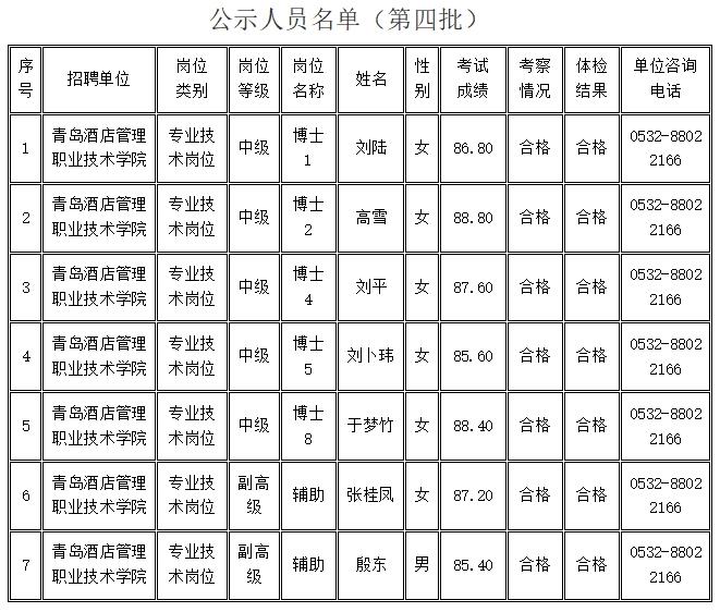 根據(jù)省屬事業(yè)單位公開(kāi)招聘有關(guān)政策規(guī)定,按照崗位招聘計(jì)劃,青島酒店管理職業(yè)技術(shù)學(xué)院組織完成了公開(kāi)招聘考試、考察、體檢等工作,現(xiàn)對(duì)該單位第四批擬聘用人員進(jìn)行公示。公示期為7個(gè)工作日,自2024年7月10日至2024年7月18日(不含節(jié)假日)。公示期間,如對(duì)公示人選有異議,請(qǐng)向山東省商業(yè)集團(tuán)有限公司反映。反映問(wèn)題要實(shí)事求是,并告知真實(shí)姓名及聯(lián)系方式。